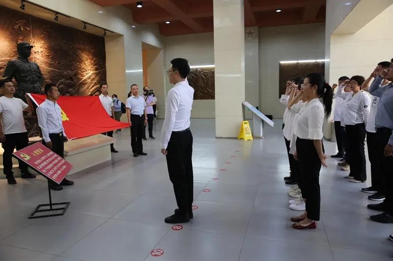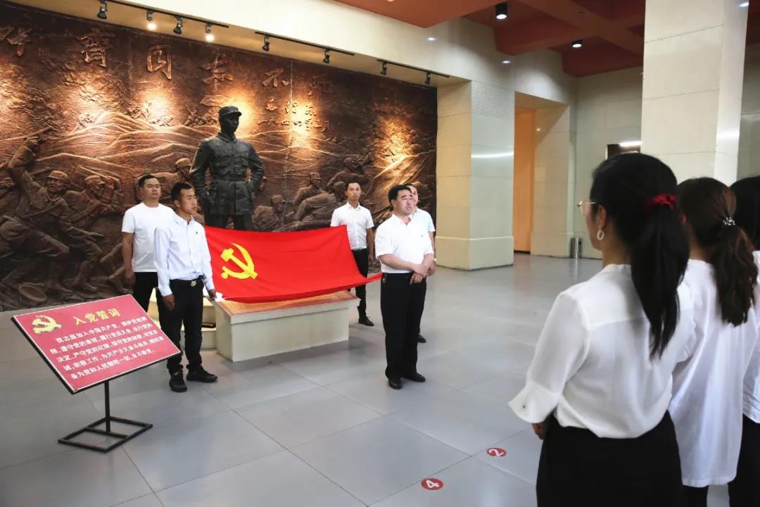 簡短的交牌儀式之后,在講解員的帶領及講解下,師生代表紛紛在馬本齋紀念館展覽的圖片和實物前駐足觀看、沉思感悟,認真學習馬本齋烈士愛國憂民、英勇奮斗的豐功偉績,以及被毛主席譽為“百戰百勝的回民支隊”可歌可泣的英雄事跡,重溫那段光輝歷史,感受著這位民族英雄堅貞不屈的英雄形象。隨后,師生代表在馬本齋烈士塑像前,面對鮮紅的黨旗,舉起右手,在扶貧工作隊隊長賈鐘昊的帶領下,重溫入黨誓詞,回顧入黨時的莊嚴承諾,時刻提醒自己作為黨員干部所肩負的神圣使命和責任,表達了牢記黨的宗旨、緬懷革命先烈、踐行初心使命的信心和決心。