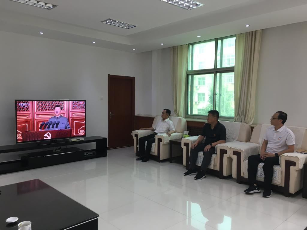 七月的第一天,廊坊電大校園百花盛開,花香鳥語,甬路旁“偉大的中國共產黨萬歲”“全國各族人民大團結萬歲”兩幅鮮紅的標語增添了節日的喜慶氣氛。上午8時,當慶祝中國共產黨成立100周年大會在北京天安門廣場隆重舉行時,廊坊電大第一時間組織全校教職工通過電視、網絡、校園電子顯示屏、廣播等渠道收看收聽慶祝大會直播,認真聆聽習近平總書記重要講話。