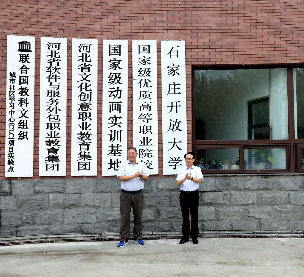 學院黨委書記陳聯記、院長王升為石家莊開放大學揭牌