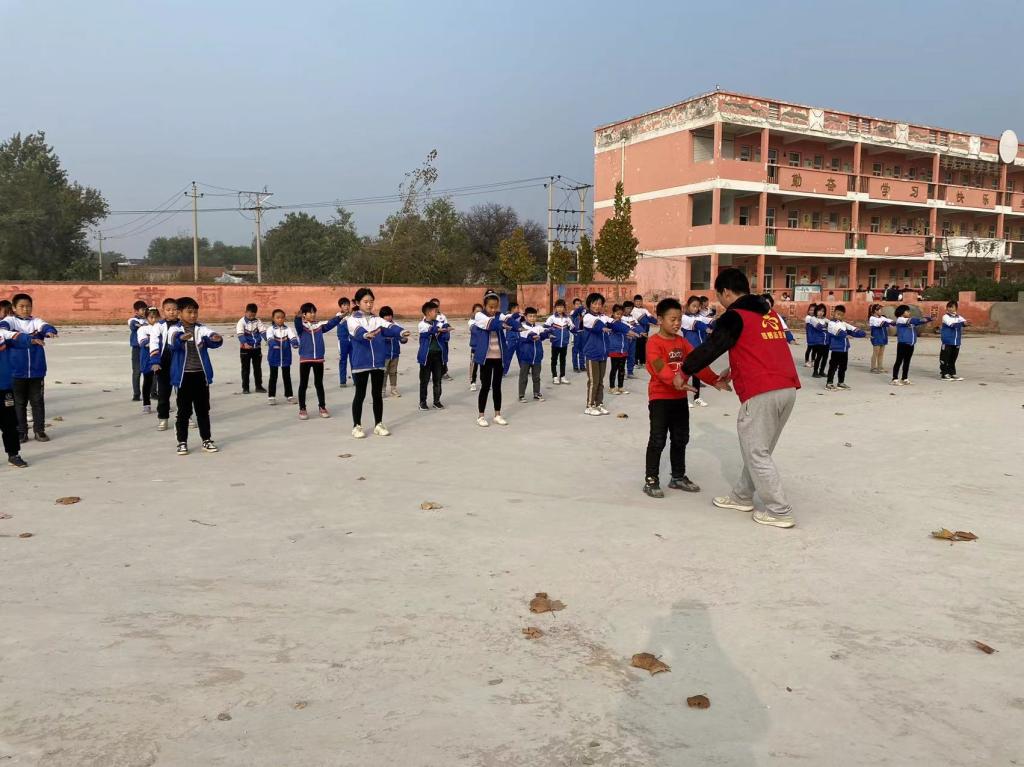 這是邯鄲開放大學掛牌以來開展的第一次“微愛接力”活動,兩位老師也是做了充分的準備。活動中陳琦老師給孩子們講解的是中國特有的繪畫形式——國畫賞析,課堂上以問答的形式和孩子們進行了互動,為他們今后的藝術啟蒙起到了積極影響。操場上的王玉龍老師給孩子們講解了太極基礎原理及太極八門五步,手把手糾正了孩子們在練太極當中的步法錯誤,并向孩子們傳授了傳統太極十三勢。