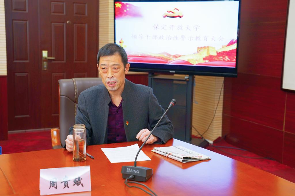 為深入學習貫徹落實黨的十九屆六中全會精神與習近平總書記關于全面從嚴治黨的重要論述,加強和改進保定開放大學作風紀律建設,切實增強黨員干部廉潔自律和拒腐防變能力,堅定不移推動全面從嚴治黨向縱深發展。11月18日上午,保定開放大學在八樓第二會議室召開領導干部政治性警示教育大會。校黨委班子成員、全體中層干部參加會議。會議由校長李樹進主持。
