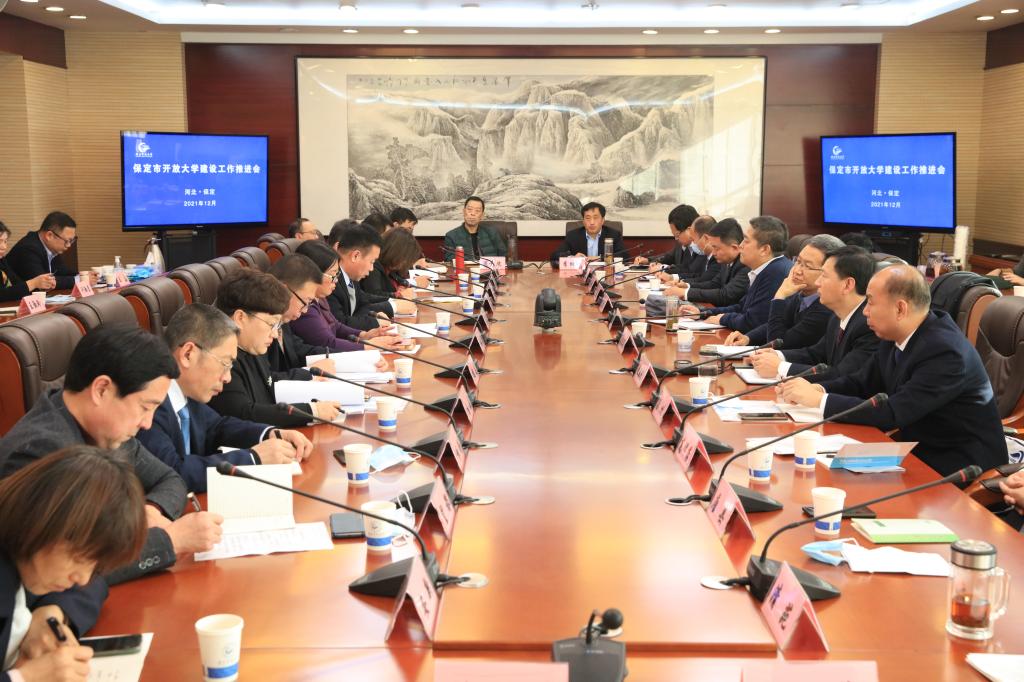 為落實市第十二次黨代會精神,加快市縣兩級開放大學建設步伐,12月3日上午,保定開放大學在八樓會議室召開保定市開放大學建設工作推進會,保定開放大學全體領導班子成員、相關處室負責人及21所縣級電大校長參加會議。校長李樹進主持會議,黨委書記周貴斌講話。