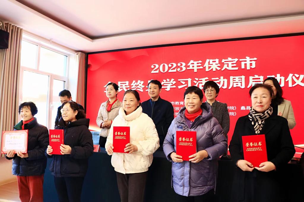 儀式上,對2023年“百姓學習之星”“終身學習品牌項目”及蠡縣社區教育優秀社團和個人進行了表彰并頒獎。隨后,與會人員參觀了蠡縣開放大學校園及社區教育功能室,近距離感受終身學習的魅力和豐富多彩的社區教育活動成果。