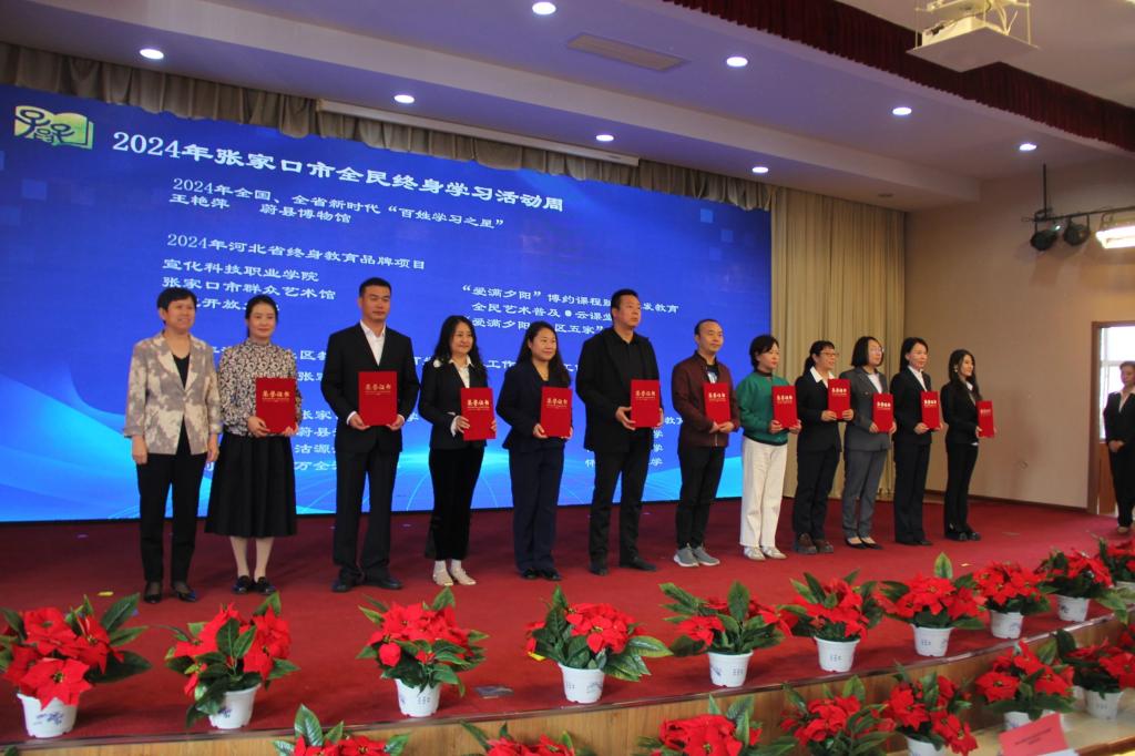 9月24日,2024年張家口市全民終身學習活動周啟動儀式在張家口開放大學舉行。本次啟動儀式式由張家口市教育局主辦,張家口市開放大學承辦,張家口市委宣傳部、市文旅局、農商行、市群藝館、宣化科技職業學院等單位有關負責人,各縣區教育局、市屬院校師生、全國全省“百姓學習之星”、河北省終身教育品牌項目獲獎單位及社區教育老年教育先進單位及優秀工作者共計200余人參加啟動儀式。張家口市教育局副局長賀志英出席啟動儀式并講話。