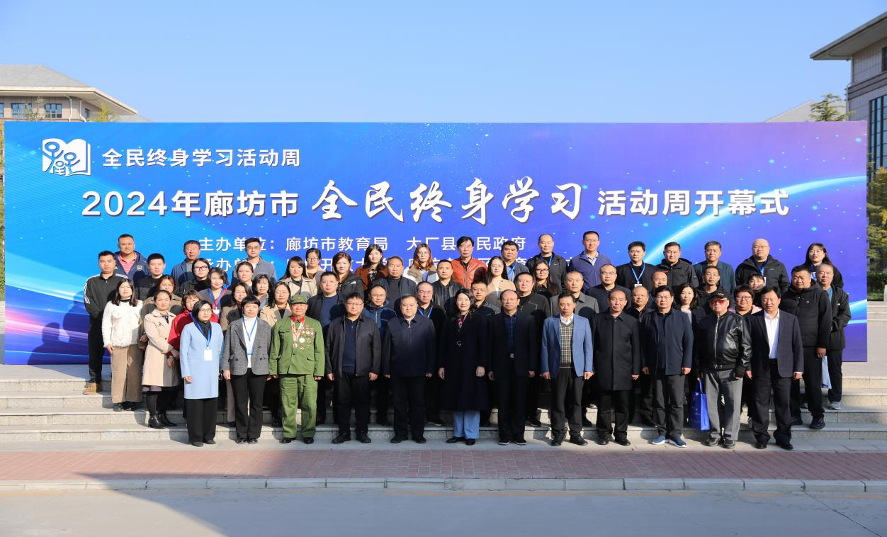 10月23日,2024年廊坊市全民終身學習活動周開幕式在大廠開放大學舉行。本次開幕式由廊坊市教育局、大廠縣人民政府主辦,廊坊開放大學、大廠縣教體局、大廠開放大學承辦。河北開放大學宣傳統戰部部長、社區教育學院院長王麗娟,市委教育工委書記、市教育局黨組書記李宏疆,廊坊開放大學黨委書記馬利國,大廠縣人民政府副縣長李建軍出席開幕式。市委宣傳部、市委社會工作部等市直單位有關負責人,各縣(市)區教育局、市屬高校有關負責同志、“百姓學習之星”、“終身學習品牌項目”獲獎單位及代表、社區教育、老年教育學員、大廠職業技術教育中心學生近400人參加開幕式。