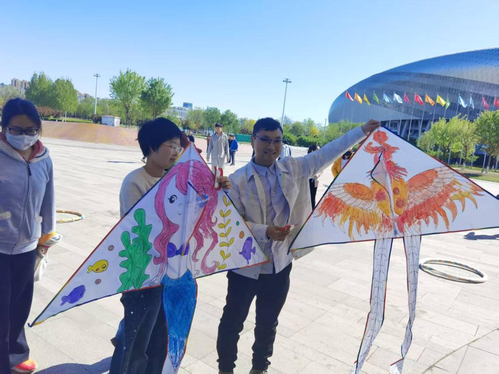 手繪風箏,創意無限。大家一筆一劃地涂抹色彩,要給風箏裝扮上喜歡的顏色......