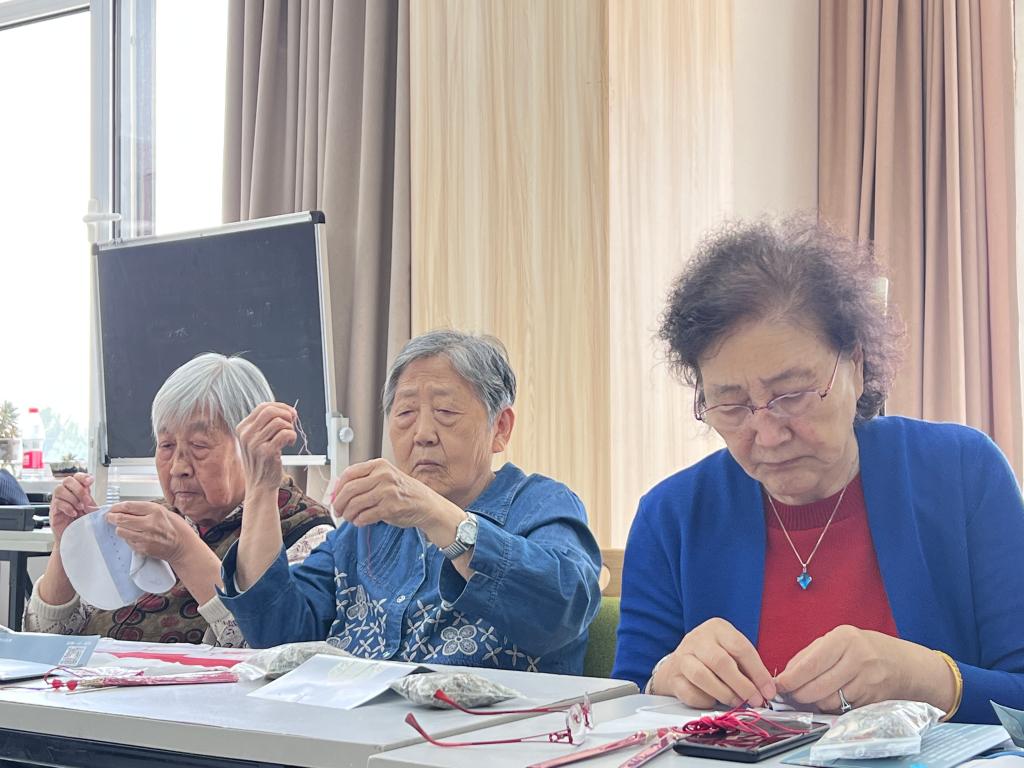 活動伊始,第一黨支部書記萬曉結合中醫藥文化,介紹了香囊的歷史淵源、文化寓意以及制作方法,老年朋友們聽得津津有味,沉浸在中華傳統文化的深厚魅力之中。制作環節,大家熱情高漲,紛紛動手實踐。支部黨員與團員采用“分組結對”的形式,幫助老人們穿針引線、縫制香包、填充香料、裝飾點綴,現場歡聲笑語不斷,其樂融融。