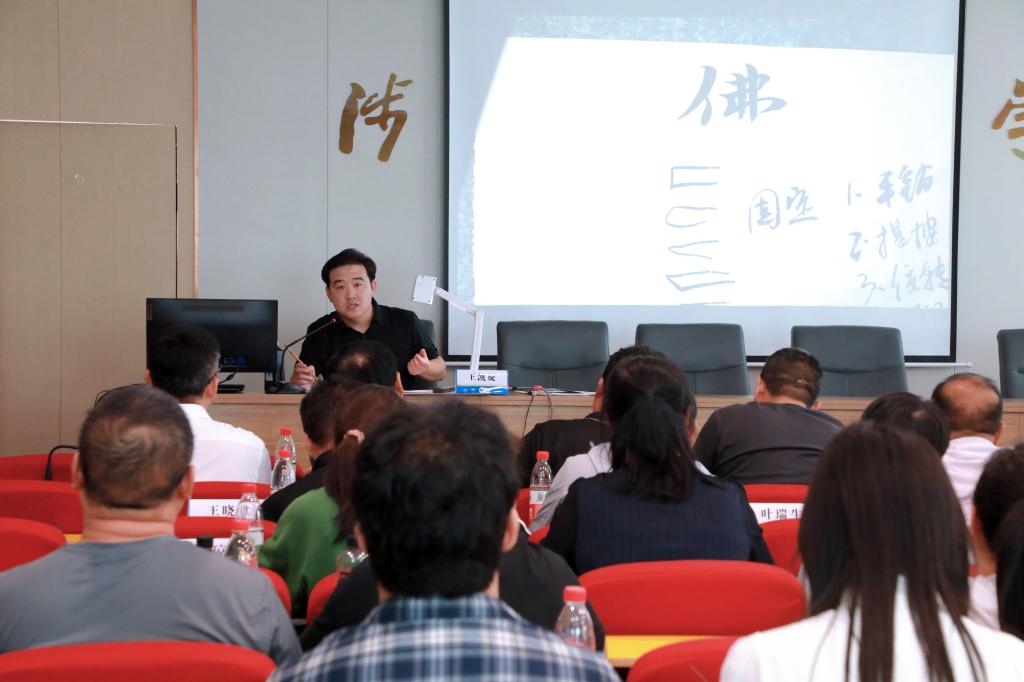 隨后,王凱旋教授結合媧皇宮天下第一壁經群與自身書法創作經驗,作《從壁經臨摹到時代創新》專題講座,深入淺出地解析書法藝術的傳承與創新,并提出“以筆為犁,深耕社區”的教育理念,引發與會者強烈共鳴。