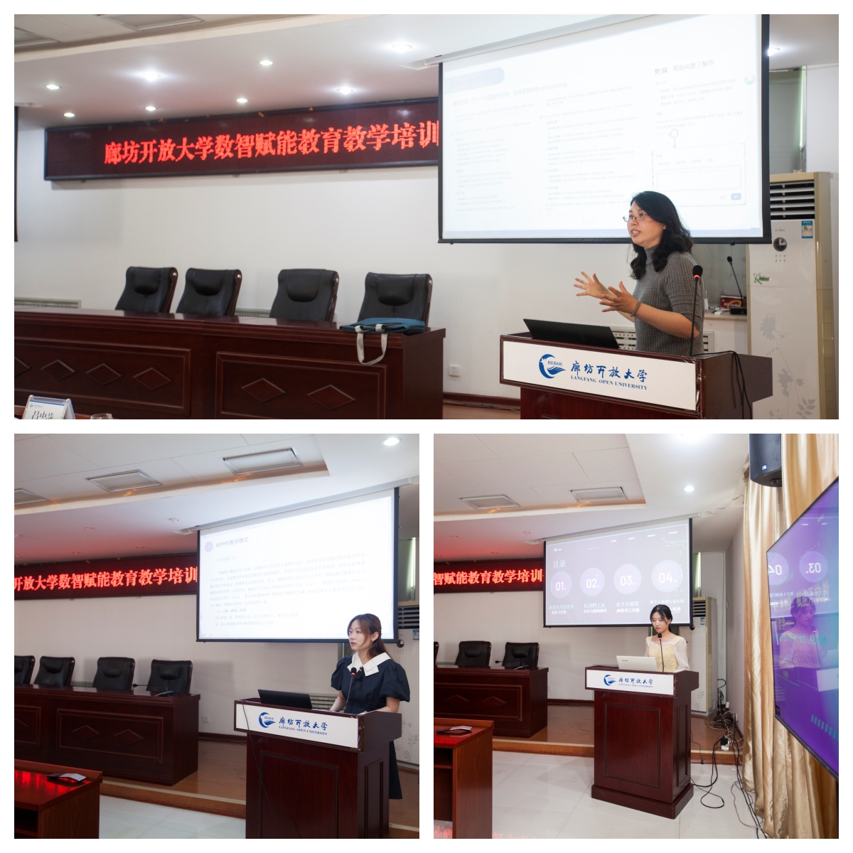 本次培訓會邀請河北開放大學喬海英教授及廊坊開放大學王紫薇、劉思佳兩位教師,分別以《DeepSeek 助力教師日常辦公與教學效率提升》《數字化技術賦能教育教學 —— 從理論到工具》為題進行講座,內容涵蓋 DeepSeek 的使用、AI 輔助課件制作與論文生成、數字人視頻教學開發等方面。