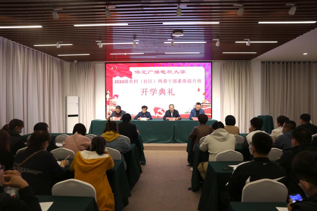 10月16日,保定電大農村(社區)兩委干部素質提升班開學典禮在大汲店村舉行。保定市委組織部基層組織處處長周青文,校長李樹進,副校長顧文博、薛玉琪出席典禮,2020年秋季兩委干部素質提升班學員、保定電大教師共計120余人參加,典禮由副校長顧文博主持。