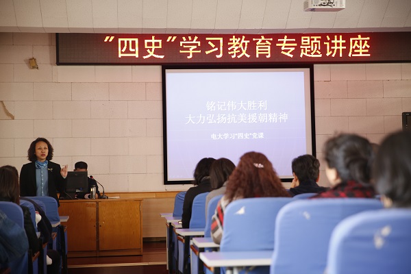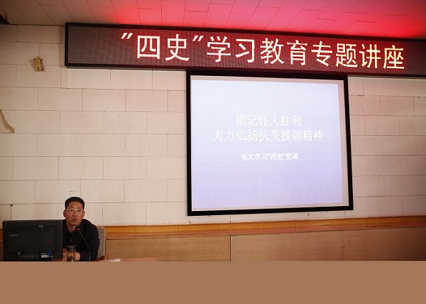 10月27日下午,秦皇島電大二樓多功能廳里回蕩著《中國人民志愿軍戰歌》氣勢磅礴的旋律,仿佛把我們帶到那個戰火紛飛的年代。校黨委書記趙清元正在為全體教職工上“四史”學習教育專題黨課,講述“抗美援朝,保家衛國”那一段波瀾壯闊、艱苦卓絕的歷史,帶大家重溫新中國的崢嶸歲月。