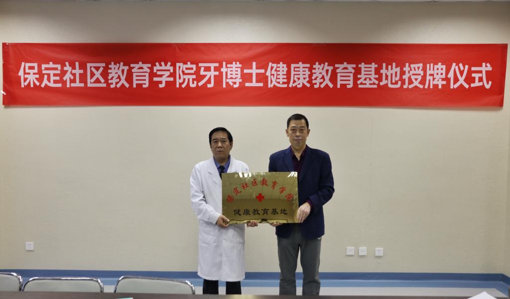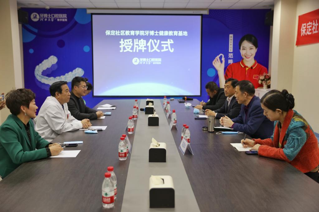 11月24日,保定社區教育學院健康教育基地在“牙博士口腔醫院”掛牌。保定電大黨委書記周貴斌,校長、保定社區教育學院院長李樹進,副校長、保定社區教育學院副院長趙國華,“牙博士口腔醫院”副院長賈軍鎖、馮杏茹總監、榮海威總監等出席授牌儀式。周貴斌為“牙博士口腔醫院”授牌。