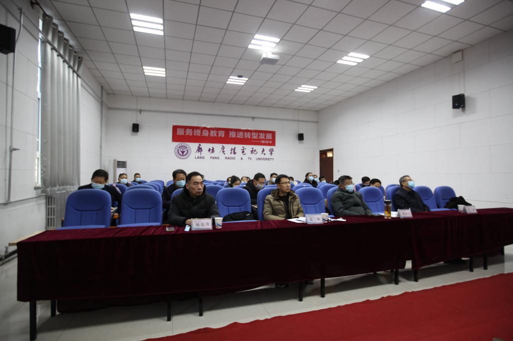 會議采用遠程視頻會議的方式舉行,主會場設在河北開放大學終身教育大講堂,廊坊分會場設在廊坊電大云教室,通過遠程視頻參會。廊坊市教育局和各縣教體局領導,廊坊電大黨委書記、校長李河均,副校長李琥、姚東升及各縣級電大負責人30余人參加了此次會議。