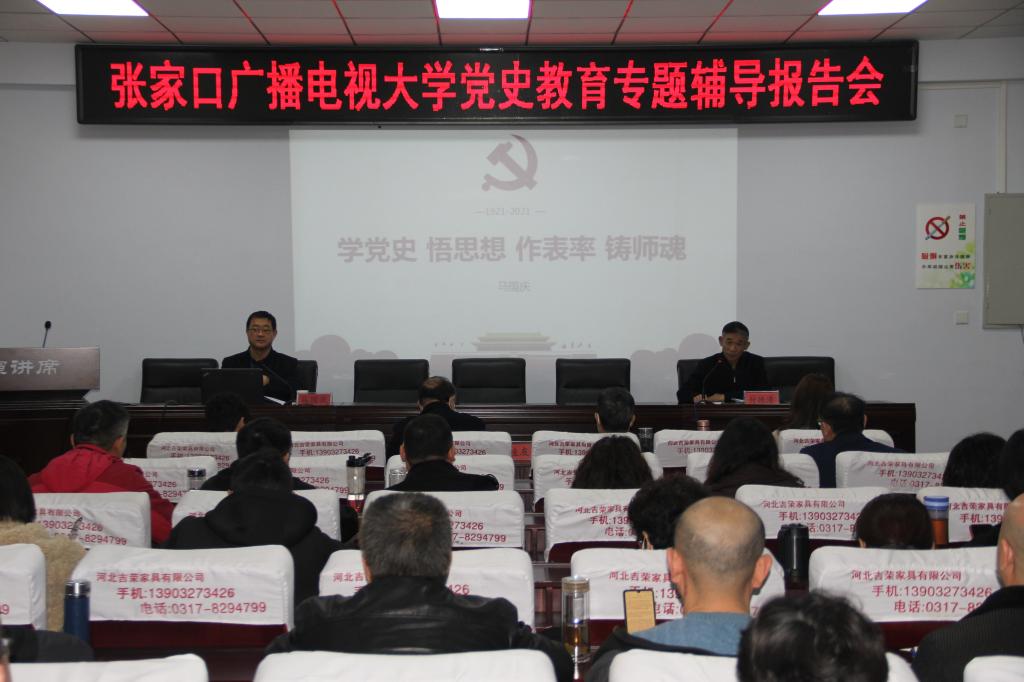 3月19日,張家口廣播電視大學(xué)舉行了全校黨史教育專題輔導(dǎo)報(bào)告會,邀請市委教育工委、市教育局黨建科科長、市委講師團(tuán)成員馬國慶同志為全體教職工作了題為“學(xué)黨史 悟思想 作表率 鑄師魂”的專題輔導(dǎo)報(bào)告。