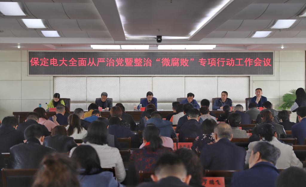 3月22日,保定電大召開全面從嚴治黨暨整治“微腐敗”專項行動工作會議。校黨委班子成員和全體教職工參加會議。校長李樹進主持會議。