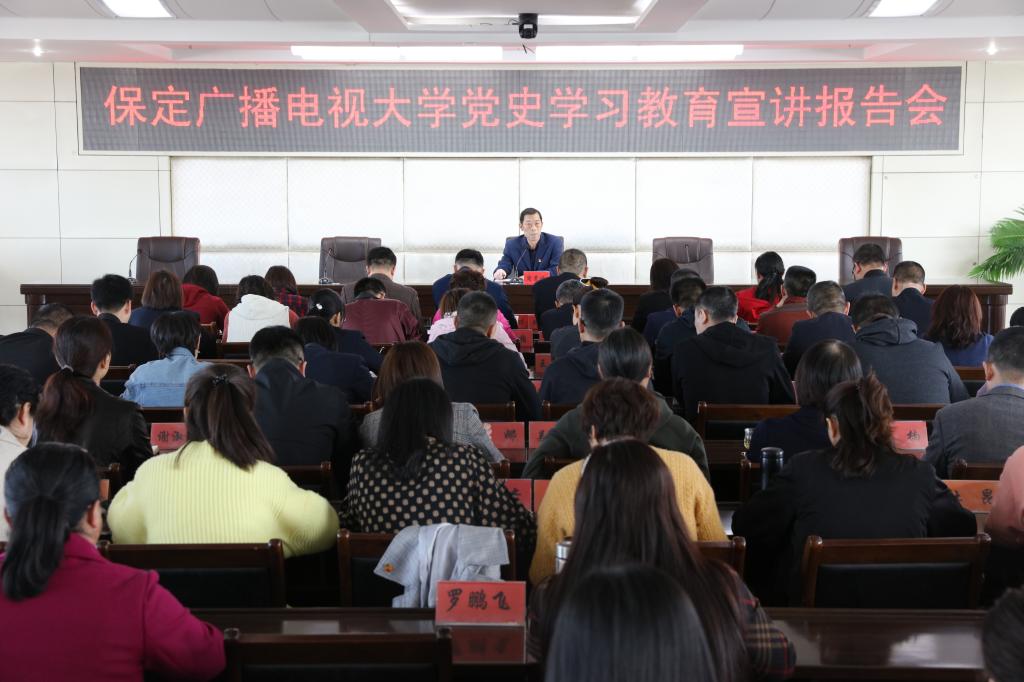 4月13日,保定電大在十樓會議室召開黨史學習教育宣講報告會,黨委書記周貴斌作宣講報告。全體教職工參加會議。