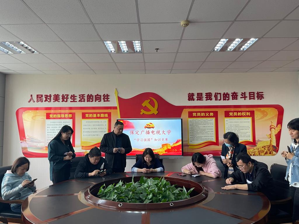 為進一步提升黨員同志利用“學習強國”平臺充實理論知識的積極性,持續推動黨史學習教育往深里走、往實里走、往心里走。4月30日,保定電大在黨員活動室舉辦“學習強國”知識競賽活動。