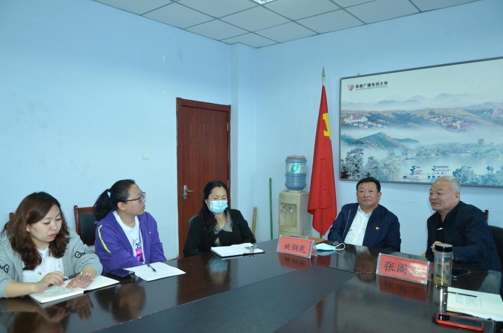 為慶祝中國共產黨成立100周年,探索運用新媒體技術手段開展成人學生思想政治教育實踐活動,5月25日上午,河北開放大學在長城新媒體集團冀云·融媒體中心舉行“紅色‘冀’憶·云實踐”百場達人直播帶學活動啟動儀式。承德電大作為云會場,通過“云視訊”系統遠程參加此次啟動儀式。學校黨委書記姚鋼乾、黨委副書記張閣玉、開放教育學院、社區與老年教育學院負責人及相關教師觀看了啟動儀式。