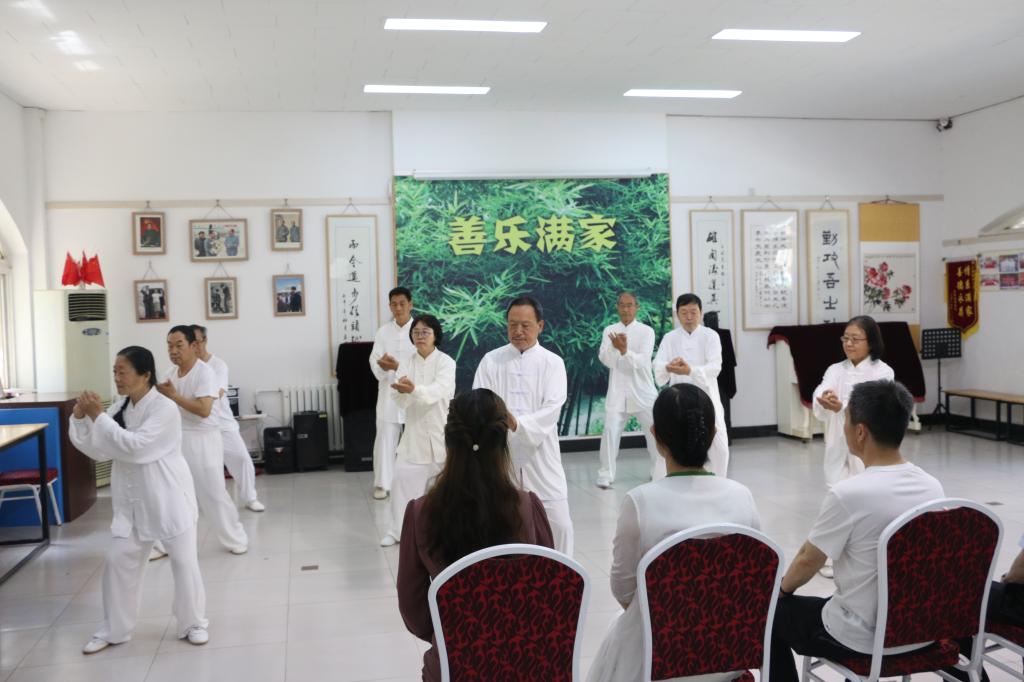 上午,邢處長到樂滿家俱樂部考察,該俱樂部是河北省社區教育實驗基地、保定市終身學習體驗基地。韋子斌經理介紹了俱樂部理念和目標,一是永遠跟黨走、最美夕陽紅,做保定市中老年文化的引領者;二是共同學習、抱團養老,實現中老年人的“自主學習+自我服務”;三是逐步打造“學習圈”、“生活圈”、“養老圈”,創建樂滿家共學養老社區。正在上課的太極班即興進行了表演。邢處長與學員們親切交談,詢問住得遠不遠,多長時間上一次課,為什么選擇來這里學習。邢處長看到學員們的幸福狀態感到非常高興,對樂滿家的模式充分肯定,認為可以復制到村、社區,并對今后的經營模式、可持續發展提出了指導意見。