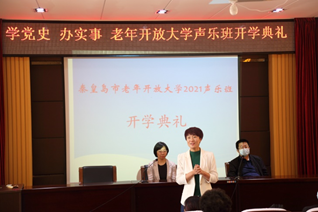 開班儀式上,由梁曉爽老師介紹了此次聲樂(lè)班的基本情況,隨后由李可副校長(zhǎng)為本期開班致辭。李可副校長(zhǎng)為老年學(xué)員能選擇我校作為繼續(xù)教育和終身學(xué)習(xí)的平臺(tái)表示祝賀,我們將以最優(yōu)秀的團(tuán)隊(duì)為老年大學(xué)提供優(yōu)質(zhì)的教學(xué)與服務(wù);我校正處在更名和轉(zhuǎn)型的重要秦皇島廣播電視大學(xué)老年開放大學(xué)階段,老年開放大學(xué)將是建設(shè)開放大學(xué)的關(guān)鍵一環(huán);同時(shí)李可副校長(zhǎng)對(duì)學(xué)員們今后的學(xué)習(xí)提出期望,希望學(xué)員在新冠疫情未退的情況下能遵守學(xué)校紀(jì)律,心懷“莫道桑榆晚,微霞尚滿天”的精神,順利完成此次學(xué)習(xí)。