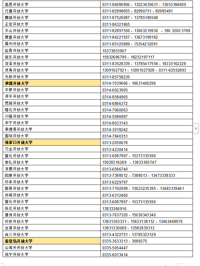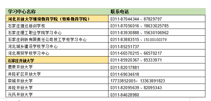 河北開放大學開放教育全省可招生開放大學或學習中心名單