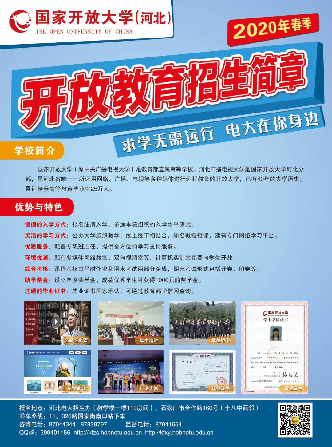 開放教育招生咨詢電話:0311-87044344、0311-87829797;國家開放大學(xué)線上報名;開放教育學(xué)院線上報名。