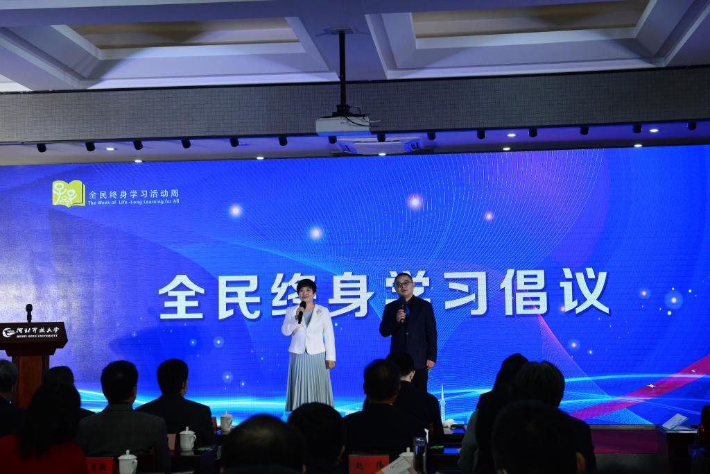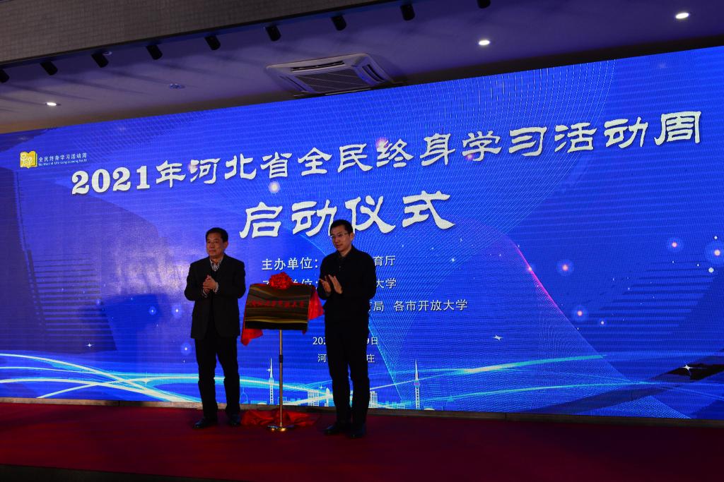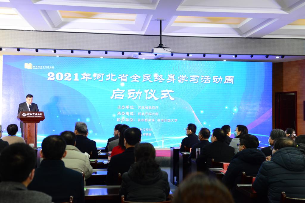 12月9日,以“慶建黨百年華誕 譜終身學(xué)習(xí)新篇”為主題的2021年河北省全民終身學(xué)習(xí)活動周啟動儀式在河北開放大學(xué)舉行。啟動儀式由省教育廳主辦,河北開放大學(xué)承辦,各市教育局、各市開放大學(xué)協(xié)辦。省委宣傳部、省人社廳、省民政廳、省文旅廳、省委老干部局、省婦聯(lián)、團省委、省老齡辦等部門有關(guān)同志,省教育廳高教處、職成處(老年教育處)有關(guān)負責(zé)同志,部分駐石高校、中職學(xué)校領(lǐng)導(dǎo),省成人教育協(xié)會、省社區(qū)教育指導(dǎo)中心負責(zé)同志,河北開放大學(xué)領(lǐng)導(dǎo)班子成員、正處級干部和獲獎?wù)叽韰⒓觾x式。河北省教育廳副廳長張春生出席儀式并講話。河北開放大學(xué)黨委書記籍獻平,黨委副書記、校長段潤保出席儀式,黨委常委、副校長陳軍平主持啟動儀式。